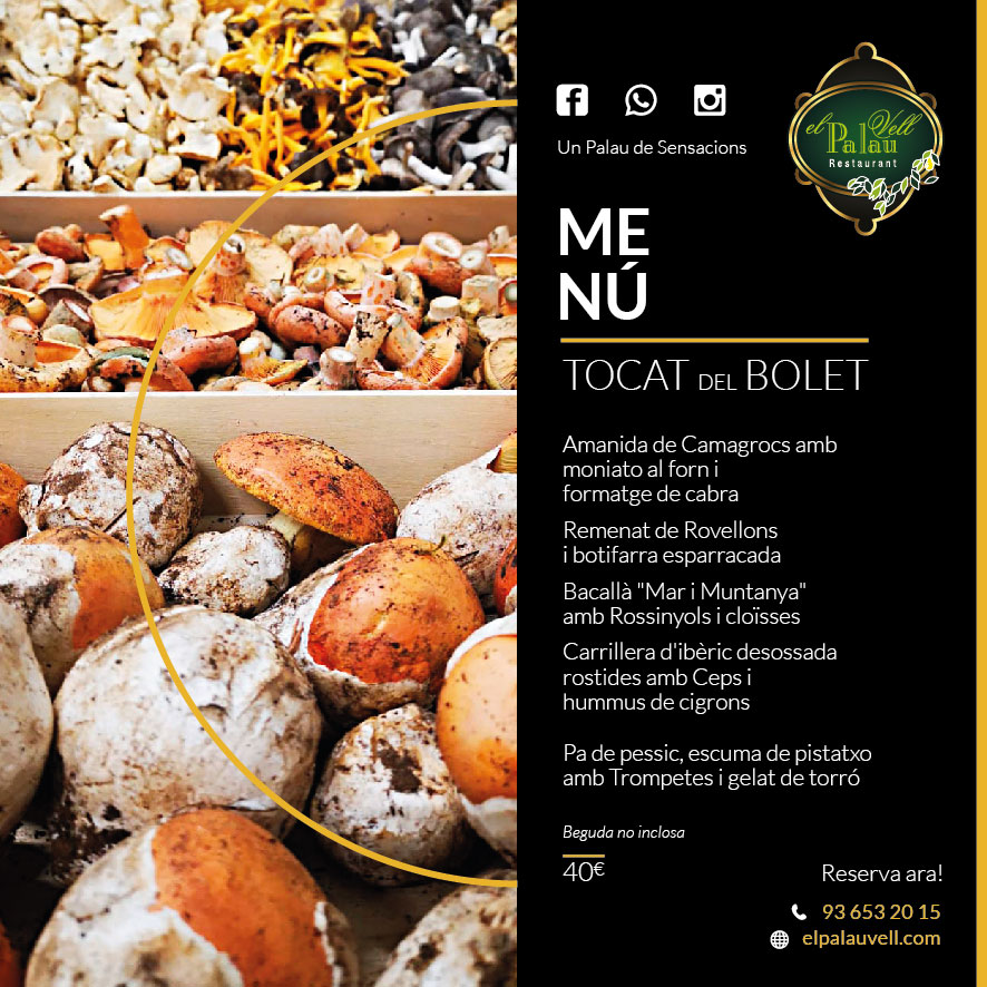 18 Oct đ Vuelve el âMenĂș Tocat del Boletâ en El Palau Vell! đ